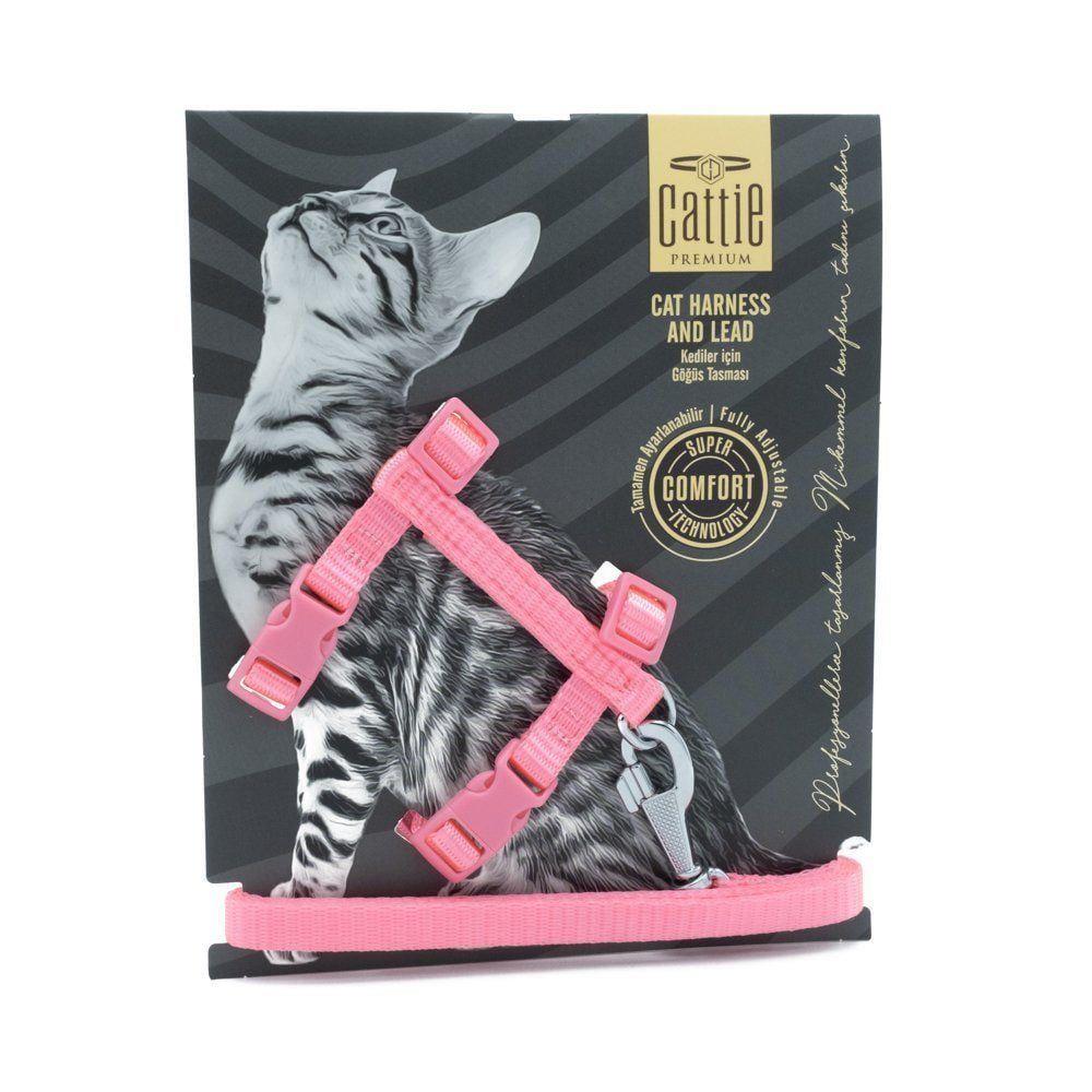 Cattie Dokumadan El Yapımı Kedi Göğüs & Gezdirme Takımı 1x25-40cm - Pink