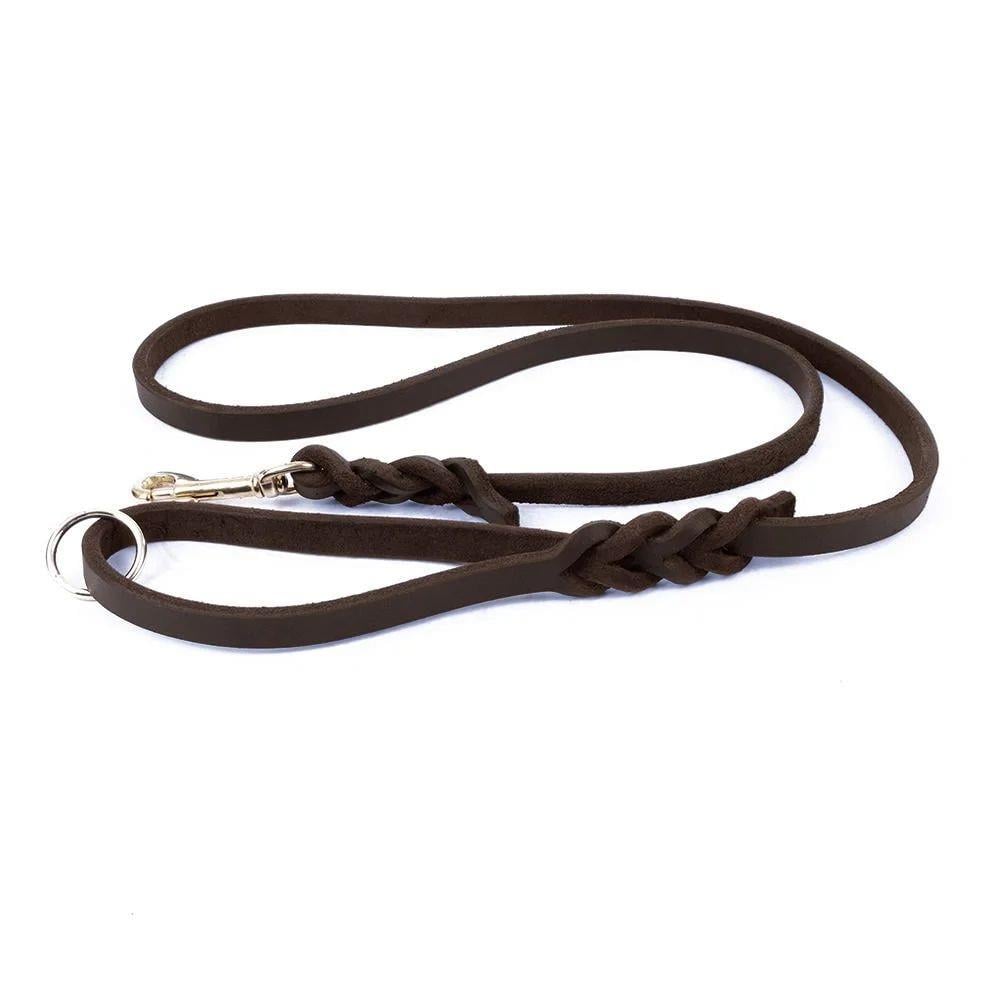Doggie Eğitim Serisi Örgülü Model Yağlı Gerçek Deriden El Yapımı Eğitim Köpek Gezdirme Kayışı 1,4x150cm - Oil Brown