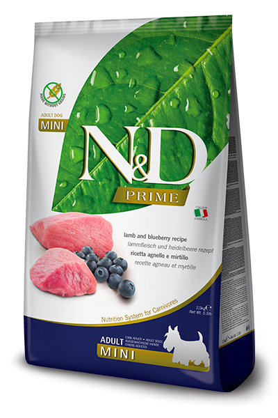 N&D PRIME Kuzu eti ve yaban mersini. Yetişkin köpekler için formüle edilmiş tam mamadır. 2.5kg