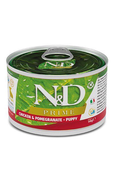 N&D PRIME Tavuk & Nar. Yavru köpekler, gebe veya emziren yetişkin köpekler için formüle edilmiş tam mamadır. 140gr