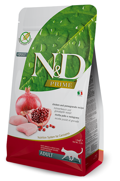 N&D PRIME Tavuk ve nar. Yetişkin kediler için formüle edilmiş tam mamadır.1.5kg