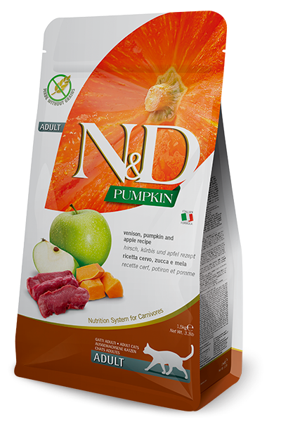 N&D PUMPKIN Geyik, balkabağı ve elma. Yetişkin kediler için tam mamadır. 1.5kg