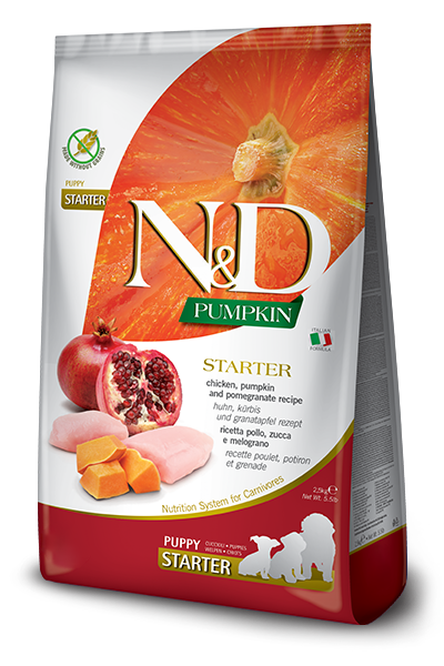 N&D PUMPKIN Tavuk, balkabağı ve nar. 2 aylık yaşa kadar olan sütten kesilmemiş yavru köpekler için formüle edilmiş tam mamadır. 2.5kg