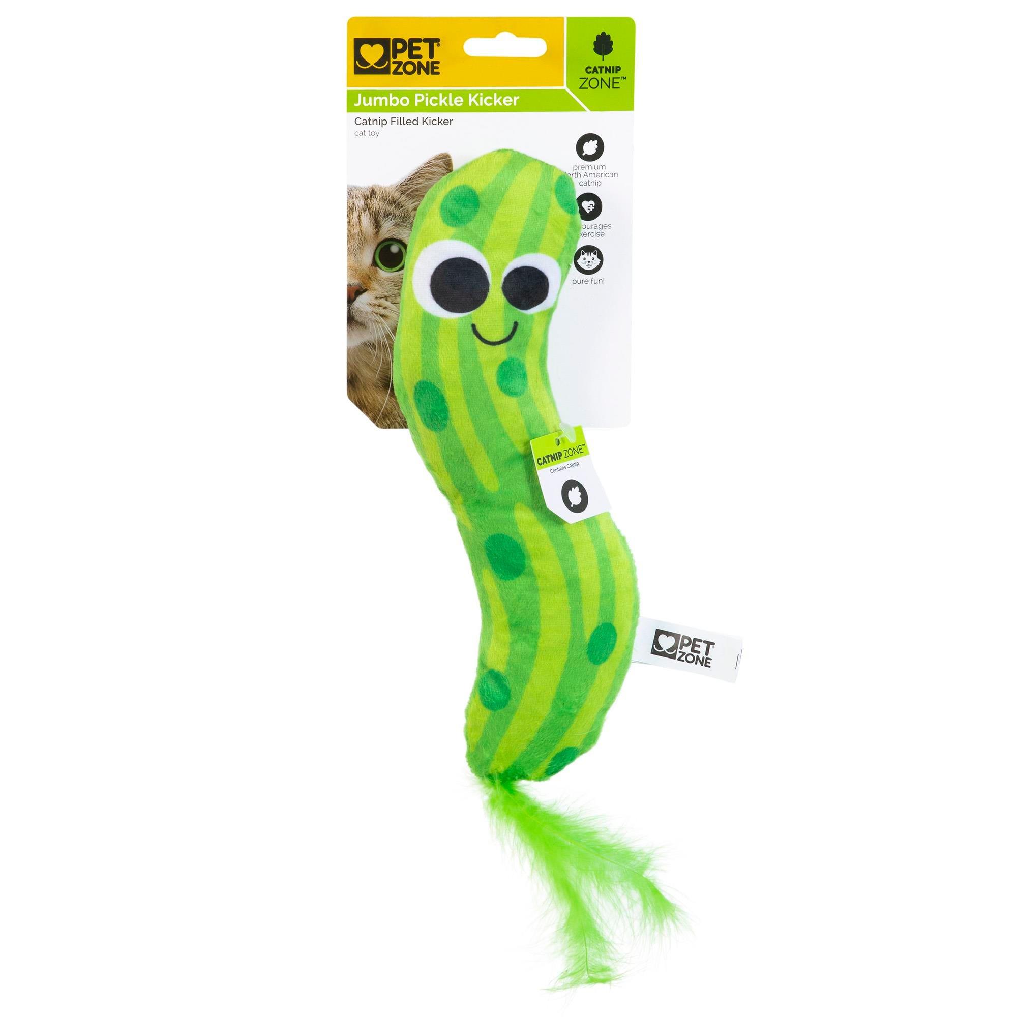 Pet Zone® Jumbo Pickle Kicker Kedi Oyuncağı, kedinizin oyun saatlerini daha eğlenceli hale getirecek harika bir oyuncaktır. Hışırdayan yapısıyla dikkat çeker, kedinizin ilgisini çeker ve uzun süre oyun oynamasına neden olur. Kedi nanesi ve matatabi karışımı ile doldurulmuş olan bu oyuncak, kedinizin avcılık içgüdülerini harekete geçirir. Bu oyuncak, kedinizin tekmelemeye, sarılmaya ve güreş yapmaya doyamayacağı şekilde tasarlanmıştır.